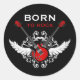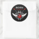 Autocollants de rocker personnalisables avec guitares de roche électrique croisée sur rouge et noir, ailes et ornements floraux vintages. Vous pouvez le personnaliser avec du texte personnalisé ou modifier le texte et la couleur arrière - plan.
