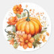 Sticker est montré dans le rond avec une belle impression d'aquarelle citrouille d'automne. Customisez cet objet ou achetez tel quel. Image sous licence