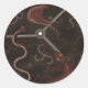 A propos de "ANIMAL TRACKS" un dessin original de Skye Ryan-Evans (2001) © Cette image terreuse est une carte aborigène australienne d'une partie du désert aussi connue en Australie, comme l'Outback. Les différents points colorés représentent des éléments naturels comme les montagnes, les cours d'eau, les lits de criques séchés, les sources de nourriture comme Kangaroo, Snake et Goanna etc. Beaucoup de cercles représentent de petites communautés désertiques et les plus petites représentent des parties de chasse. Un serpent Brown massif sillonne la région désertique avec une langue fourrée en fût. Le serpent est lié à la Création dans les mythologies du rêve australien. Dans cette représentation terrestre, la tête et la langue du serpent s'approchent d'un petit campement de chasseurs. Ils sont cependant protégés par un champ de force symbolique ou un champ d'énergie spirituelle, et restent donc intacts, car ils sont spirituellement en harmonie avec le désert.