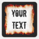 Le feu orange et noir grunge flambe le modèle de cadre de frontière prêt pour votre propre texte. Facile de personnaliser cet autocollant avec tout nom ou texte. Montré est l'autocollant carré de forme.