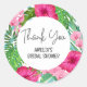 Ajoutez une touche d'élégance tropicale à vos faveurs de douche nuptiale avec nos exquis autocollants de remerciement de faveur florale de plage tropicale. Capturez l'essence d'un refuge tropical et élevez vos faveurs de douche nuptiale avec ces enchanteurs autocollants de remerciement de faveur florale de plage tropicale présentant des feuilles tropicales avec des fleurs d'hibiscus rose et des fleurs d'orchidée rose.