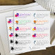 Autocollants d'adresse de retour en forme avec des fleurs tropicales et des motifs de vie marine. Les étiquettes colorées s'adaptent à votre texte. Chaque étiquette comporte une image sur le côté gauche. Les fleurs d'hibiscus, le dauphin, la pieuvre et les fleurs d'oiseau de paradis sont les images avec un texte imprimé en couleur. Utilisez trois ou quatre lignes pour l'adresse, qui sera imprimée de la même façon sur toutes les étiquettes. Affiché sur une feuille de format 15 cm. Si vous souhaitez des étiquettes plus grandes, choisissez une taille de feuille supérieure.