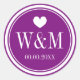 Monographie de mariage violet et blanc profond pour les autocollants. Coeur mignon avec nom monogrammé initiales de la mariée et du marié plus la date du mariage. Merci personnalisées autocollants ou scellants d'enveloppe / sceaux pour enregistrer les cartes de date et les invitations. Élégante typographie stylisée pour les initiales de mariée et de mariée. Design chic / design soigné. Couleur arrière - plan personnalisable. Design romantique de thème d'amour.