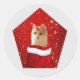 Image de chat Angora Turc dans un sac de Noël rouge sur fond rouge de Noël.