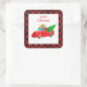 Cet autocollant carré de grande taille est montré avec un joli imprimé de camion rouge de Noël festif. Customisez cet objet ou achetez tel quel.