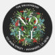 Des autocollants ronds personnalisés comportant le mot NOEL parmi des feuilles élégantes et des baies rouges, blanches et dorées avec votre nom et votre adresse en lettrage blanc chic courbé autour des bords. ARTICLES CORRESPONDANTS dans notre magasin.