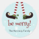 Laissez les bons moments rouler avec ces stickers de Noël amusants. Les bas elfes rayés éclatent vraiment contre l'arrière - plan bleu neigeux. Personnalisez avec vos détails, et même changer le style de police et la couleur que vous souhaitez. Disponibles en deux tailles, ils sont très utiles pour les étiquettes cadeaux ou les scellés d'enveloppe.