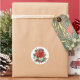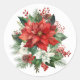 L'autocollant est présenté dans une impression de poinsettia de fête.