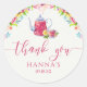 Autocollant de remerciement pour la fête du thé rose. Conçu avec des tasses à thé et des fleurs peintes à la main jaune, rose et vert citron avec une texture d'aquarelle parfaite pour les fêtes prénuptiales printanières. Personnalisez ce design avec les informations de votre fête et tout autre message personnalisé que vous souhaitez inclure ! Pour d'autres fournitures de fête coordonnées, visitez la boutique de Metro-event sur Zazzle.