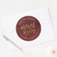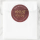 Étiquettes de cadeau de vacances de cercle personnalisées abordables avec un élégant fond aquarelle de couleur bordeaux et une typographie de script en faux or. Utilisez les outils de conception pour ajouter votre propre texte et photos pour créer une étiquette d'adresse de retour, un sceau d'enveloppe ou des étiquettes de cadeau de Noël uniques.