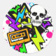 autocollants à éclair de néon avec crâne, éclair, éclat de peinture, étoiles et logo de cassette orange laurina.pastina