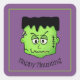 Cet autocollant carré est présenté avec une impression d'art de Frankenstein pour Halloween.