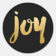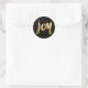 Ces autocollants comportent le mot joie dans un faux script de brosse en or gras sur un arrière - plan noir. Cachez vos enveloppes ou ajoutez-les à vos paquets pour un style festif.