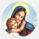 Cette magnifique représentation de Madonna et Enfant est l'un de nos coups de coeur personnels. La belle Vierge Marie a un halo et est habillée de peignoirs bleus et rouges. L’enfant Christ est assis sur les genoux de la Vierge et a son bras autour d’elle. Il a un petit halo à lui. Derrière eux se trouvent des cieux bleus et des nuages. Une Madonna et un autocollant pour enfant vraiment spécial.