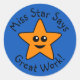 Une star de dessin animé joyeuse en orange. Le texte dit "Miss Star dit Super Travail !" et peut être modifié pour un nom/message personnalisé. Idéal pour les enseignants comme récompenses pour les étudiants.