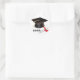 Autocollant rond illustré d'une impression de capuchon de diplômé avec date.