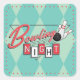 Les Autocollants pour Soirée Bowling présentent la typographie "Soirée Bowling" dans un logo rétro de style années 50 moderne, avec boule et quilles de bowling illustrées. Incorporant des éléments de bleu, rouge, blanc et gris, des points et un fond à motif diamant.