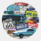 Voici de la nostalgie pour les phénomènes classiques de voiture, les amants de l'histoire des véhicules à moteur américaine et les fans des plaques minéralogiques vintages qui devraient chatouiller la fantaisie de n'importe quel amant de rétros hot rod, de voitures vintages et de bord de la route americana. Les mi-années '50 classiques Chevy, Corvette, mustang et coupés des meilleures ères de voiture sont complétées par un arrière - plan des signes de l'itinéraire 66, des plaques minéralogiques vintages et d'une carte de l'Amérique comportant la route de mère.