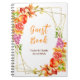 Ce magnifique et élégant livre d'hôtes de mariage présente une grenade aquarelle, des pommes, du raisin, des champignons et du feuillage sur un cadre géométrique doré. Le texte combine écriture manuscrite et polices serif pour un look élégant et moderne. C'est parfait pour un mariage de automne d'automne rustique.