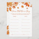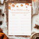 Ajoutez du plaisir à votre baby shower d'automne avec cette carte de jeu de Baby shower d'automne personnalisée! Une activité idéale pour les clients, cette carte de jeu est assortie à des thèmes chaleureux du baby shower d'automne et présente de charmants designs saisonniers. Idéal pour toute personne recherchant des idées de baby shower sur le thème de l'automne, des idées de baby shower d'automne ou des idées de baby shower octobre. Idéal pour les idées de baby showers d'automne et pour compléter n'importe quel thème du baby shower d'automne ou du baby shower d'automne avec une touche festive.