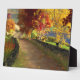 Une ruelle étroite traverse une verrière de campagne calme, remplie de champs de foin et de haies, bordée de murs en pierre et d'herbes à fleurs tombales. Deux chats jouent dans la ruelle et sur le mur à l'ombre des arbres colorés.