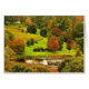 Cette carte de beaux-arts présente une belle journée d'automne saisonnière. Les arbres sont brillamment colorés avec des couleurs de feuillage automne de rouge, orange, jaune, or, vert et marron. Deux bancs donnent sur un joli étang aux reflets d'eau. Promenez-vous dans ce parc coloré, dans les collines d'Ithaca, dans la région des lacs Finger, dans l'état de New York.