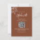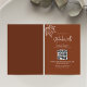 Répondez sans effort avec cette carte RSVP mariage de automne, conçue pour un mariage d'automne. Présentant de délicates feuilles d'automne dans un style simple et élégant, cette carte de réponse d'invité mariage comprend un code QR scannable pour un accès direct à votre site mariage. Une carte d'encart moderne en réplique, elle permet aux clients de répondre facilement tout en coordonnant avec beauté votre suite de papeterie saisonnière. La carte de réponse parfaite pour une fête d'automne intemporelle.