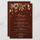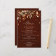 Elégante carte rustique mariage de automne de pays avec feuilles d'eucalyptus brun, rouge, orange, vert. Veuillez me contacter pour toute aide sur la personnalisation ou si vous avez besoin d'un autre produit avec ce design.