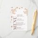 Améliorez le charme de votre célébration botanique romantique et rustique mariage de automne avec cette carte de menu sophistiquée et polie. Doté d'un feuille d'arbre forestier brun et terre cuite complexe, avec un script minimaliste de calligraphie brun foncé.