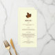 Sur un arrière - plan d'ivoire, une feuille d'érable subtilement monogrammée accentue ce menu.