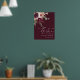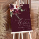 Cette affiche de bienvenue mariage présente un bouquet de fleurs d'aquarelle de dahlias, de roses de jardin et de pivoines en rouge bordeaux, marron, rose roux sur les feuilles d'automne. Pour une personnalisation plus avancée de cette conception, cliquez sur le BOUTON OUTIL DESIGN BLEU. Des articles correspondants sont également disponibles.