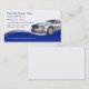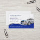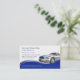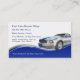 Automotive business cards with cool blue design element, image of a fast car, and white background colour you can change if you want. Designed for a body shop that fixes car wrecks, general auto repair, or a car mechanic.