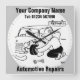 Garage clock. Promote your Automotive Repairs business. Make it personal by adding your company name and phone number. Includes faint clock face background.