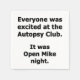 For the sarcasm lover in all of us. Check out this witty “Everyone Was Excited at the Autopsy Club. It Was Open Mike Night” design on apparel and gifts.