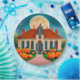 Autum/Fall Moon Paper Plates the colours are cream, blue, orange, brown.