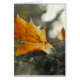 Orange maple leaf in the autumnal forest, colorkey effect.