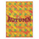 This banner spells Autumn with colours of gold and brown. Several leaves surround the banner. A backround of Autumn colours in gold, rust and yellow has been added to this design. Also available in a tiled design. Available in assorted styles. This tablecloth is available in 3 different sizes. Great addition to your Autumn decor.