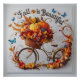 Enhance your space with this stunning conceptual art piece, featuring an intricate illustration of a vintage bicycle adorned with a large basket overflowing with vibrant fall flowers and Thanksgiving elements. The design captures the essence of the season with rich hues of orange, red, and gold, complemented by leaves, pumpkins, and other autumnal decorations spilling gracefully from the basket. Set against a clean white background, this artwork brings warmth and elegance to any room, perfect for adding a seasonal touch to your wall décor.
