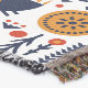 This folk art design features a bird in the forest geometric pattern.