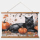 Autumn Black Cat with Pumpkins Hanging Tapestry