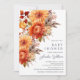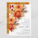 This baby shower invitation features beautiful watercolor fall coloured flowers, perfect for an autumn celebration. The warm hues of orange, yellow and red capture the essence of the season and create a cozy and inviting atmosphere. The floral design adds a touch of elegance and femininity, making it perfect for a baby girl shower.