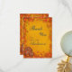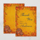 Festive yellow, red, brown and orange toned fall theme wedding thank you card design featuring decorative autumn coloured leaf and vine border with a a group of pumpkins in the bottom corner. The background has a beautiful faux texture for an old paper look. This design also comes on many other paper products to suit all your wedding set needs. Follow the link below.