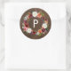 Autumn Boho Blooms Wreath Wedding Monogram Classic Round Sticker