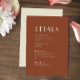 This Autumn Boho Deco | Rust wedding details enclosure card creates a simple and versatile rustic desert or country western theme for your marriage celebration. With the burnt orange, terracotta, rust, copper colour scheme, combined with the plain beige minimalist design, allows for classic mix and match with the other colours in this fall collection to create your own unique colour scheme. Add more details to the back with any further information for your guests.