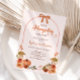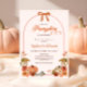 Celebrate your little pumpkin on the way with this charming baby shower invitation for a girl. Featuring whimsical pumpkins with a sweet bow and surrounded by pink, orange, and burnt orange flowers, this fall-themed design blends boho and coquette style for the perfect seasonal celebration. Personalize with your party details to create a keepsake guests will love.