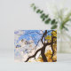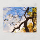 Stark black branches stand out against yellow autumn foliage and a blue sky with interesting cloud formations in an abstract pattern on this fine art postcard.
