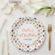 Autumn Burgundy and Orange Floral Birthday Paper Plate