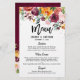 Watercolor autumn / fall floral wedding menu features a stunning bouquet of blush, orange peach, and marsala burgundy rose flowers