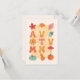 A nice card celebrating autumn and its orange leaves, pumpkins and mushrooms.