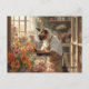 Autumn Cat with Flowers – Fall Season Greeting Postcard